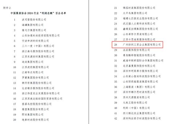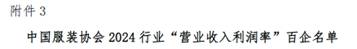 7月23日,中國服裝協(xié)會“2024行業(yè)百企發(fā)布”名單正式揭曉。紡織公司連續(xù)四年登榜,位列2024年中國服裝行業(yè)“營業(yè)收入”百強(qiáng)企業(yè)第15名;首度榮登“利潤總額”百強(qiáng)企業(yè)第28名、“營業(yè)收入利潤率”百強(qiáng)企業(yè)第99名!