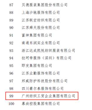 喜報:紡織公司連續(xù)多年榮登“中國服裝行業(yè)百強(qiáng)企業(yè)”榜單